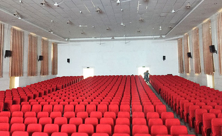案例產品選用了聲學特性優良的進口紙盆、音圈、彈波配以輕巧箱身與強勁功率結合的優勢組合,干凈質樸、準確的發音,完全勝任多用途的演出及禮堂大型會議的需要。禮堂周邊補聲系統則采用了EKS系列專業音箱,整個聲場環境達到均勻覆蓋及完美的立體感表現;同時整個聲場環境由得勝EKA系列功放提供源源不斷的大功率、強電流動力輸出,搭配得勝X7遠距離無線話筒、會議麥克風及其它周邊處理設備,達到了專業級的擴聲效果。