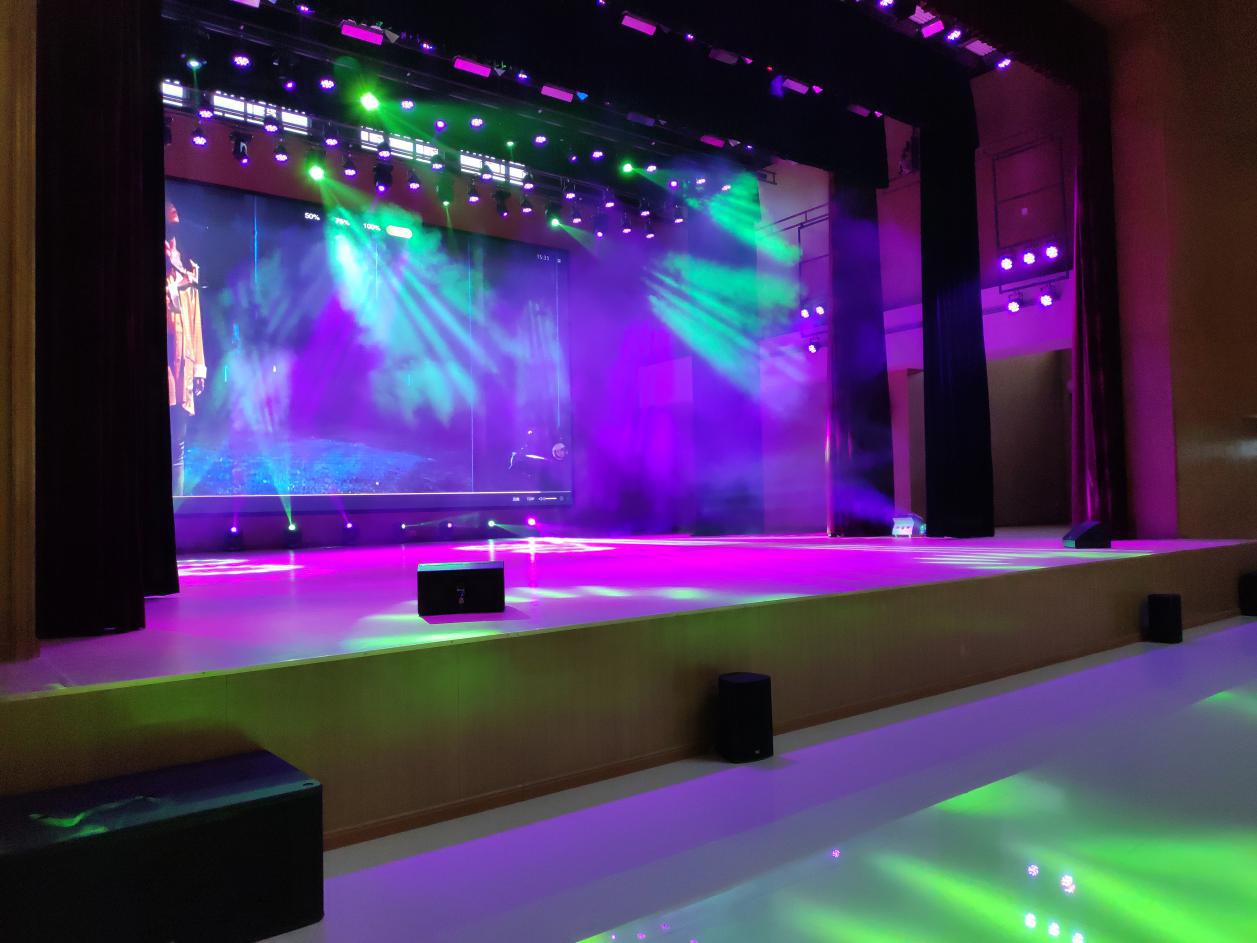 此外,還為許昌中學1000平的大禮堂建設了專業擴聲系統, 根據大禮堂的面積以及使用需求,參考國家廳堂擴聲設計標準一級進行設計,主要由聲源、音頻處理設備、功放及揚聲器系統組成。設計中所選的揚聲器是根據觀眾區的具體位置和面積,組成“點”聲源陣列,有效降低陣列的梳狀濾波效應,因此特選用恒指向揚聲器,有利于語言清晰度的提高,保證觀眾區都處于揚聲器的覆蓋范圍內。