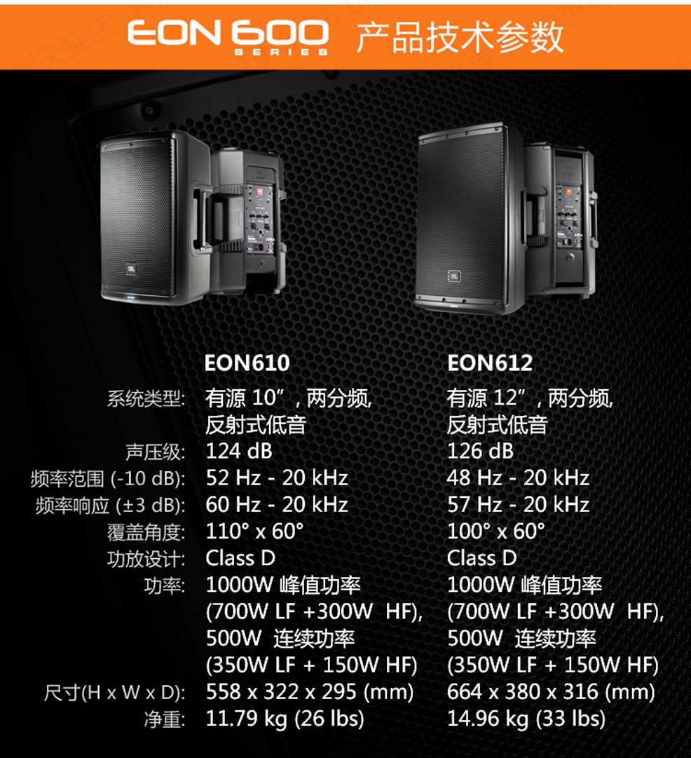 在一個(gè)緊湊的箱體內(nèi)采用一個(gè)18英寸差分驅(qū)動(dòng)的低頻驅(qū)動(dòng)器和一個(gè)500W的大功率功放,幾乎只有同類產(chǎn)品一半的重量。