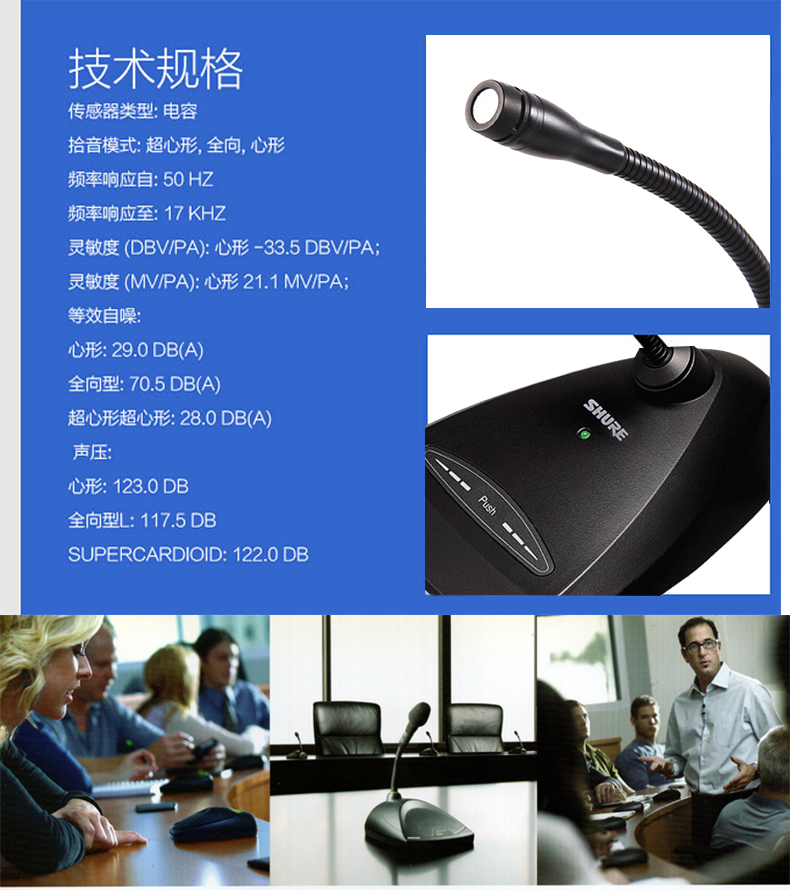 SHURE 舒爾(Shure)MX418D/C會議話筒桌面臺式有線鵝頸演講教堂超心形電容麥