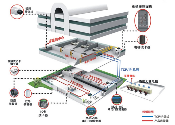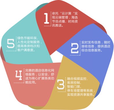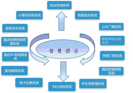 智慧酒店管理系統是綜合型的智能化集成系統,系統涵蓋了綜合布線、計算機網絡、客房控制、數字電視、信息發布、視頻監控、公共廣播、停車場管理、網絡門禁、樓宇自控等多種系統。